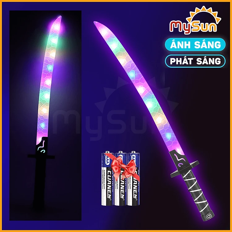 Kiếm Katana Nhật nhựa phát ánh sáng đồ chơi Samurai mini giá rẻ như thật cho bé trai tặng PIN MySun