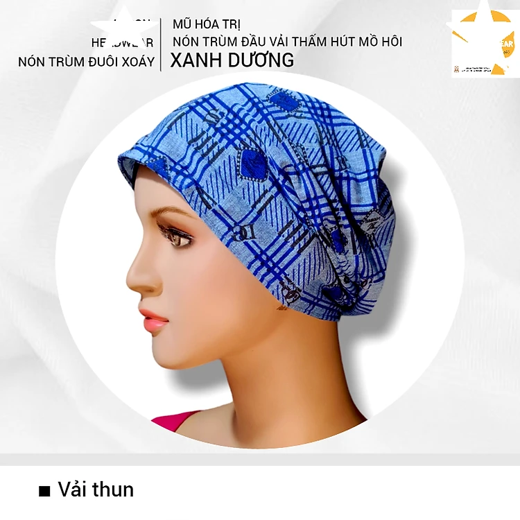 [KIỂU TRÙM ĐẦU ĐUÔI XOÁY] [2 LỚP] Nón vải trùm đầu, bằng vải mát, beanie, cancer, chemo hat, mũ vải thời trang, mũ hóa trị, mũ xạ trị
