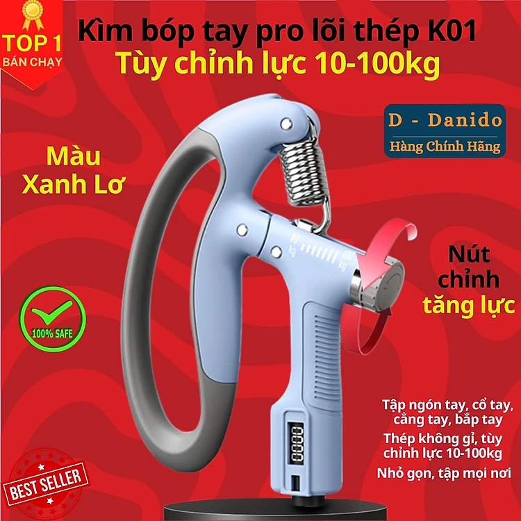 Kìm bóp tay, Kìm tập cơ tay dụng cụ tập gym tại nhà điều chỉnh lực 10-100kg có đếm số tự động D Danido
