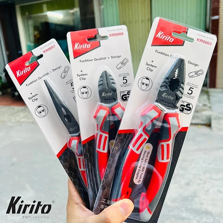 Kìm điện, kìm cắt ,nhọn kìm đa năng công nghiệp Nhật Kirito JAPAN thép CR-V cao cấp giảm 30% lực cắt
