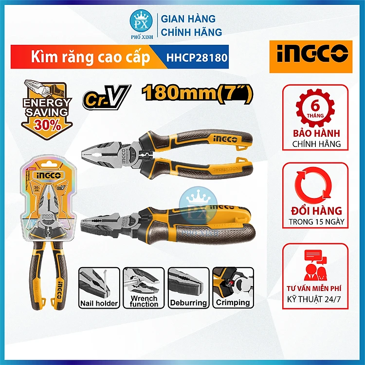 Kìm răng điện đa năng cao cấp INGCO HHCP28 7" 8" 9.5" kềm thép Cr-V chống rỉ siêu cứng tay cầm cách điện tiết kiệm 30% sức mạnh