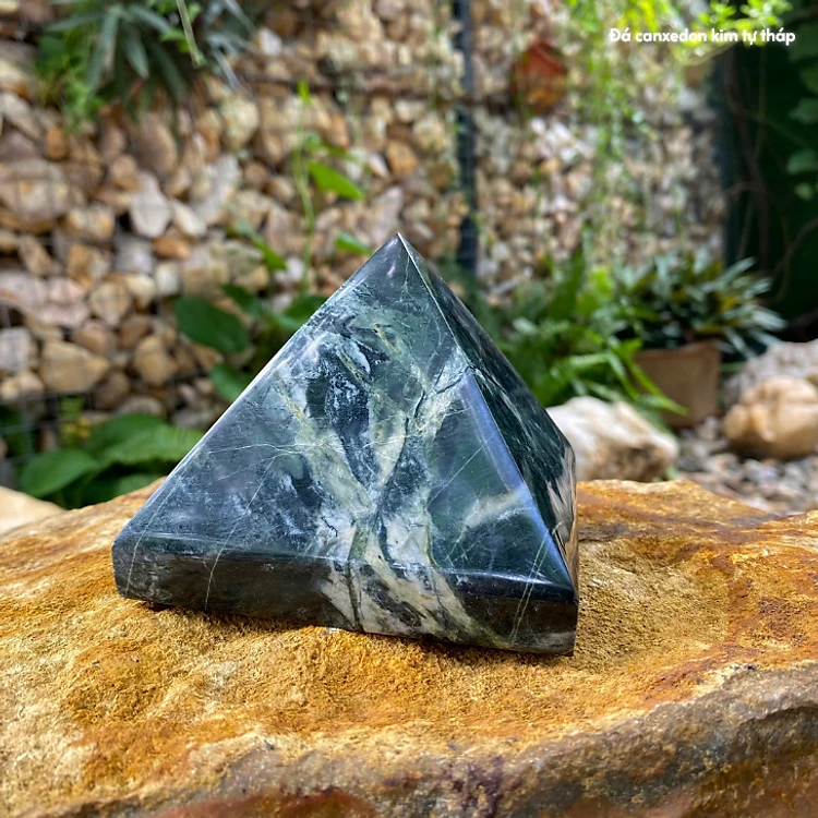 Kim tự tháp đá canxedon NHASAN T723 năng lượng cao giúp cân bằng cảm xúc và tăng cường sự bình an - nặng 1.1kg, kích thước 8 x 10cm