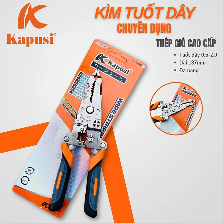 Kìm Tuốt Dây Đa Năng 12 trong 1 Kapusi Japan - Cắt, Uốn, Tuốt Dây Chuyên Dụng K9105