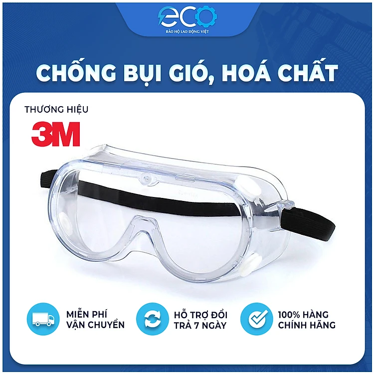 Kính bảo hộ lao động 3M cao cấp Mỹ 11621AF chống bụi, chống hóa chất, chống sương mờ, kính phun thuốc trừ sâu