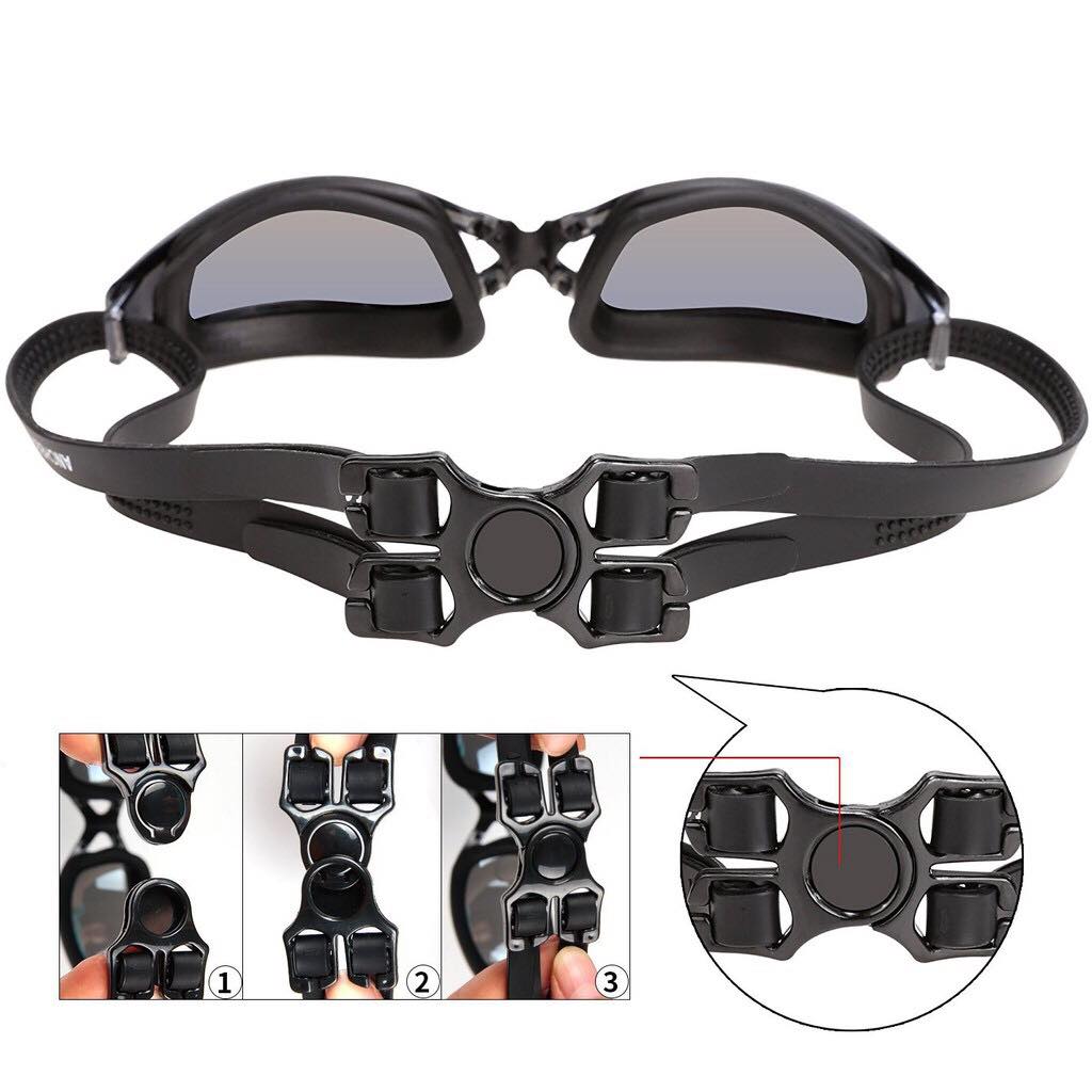 Kính bơi có đệm viền 2 mắt mềm, độ dài dây đeo có thể điều chỉnh được.