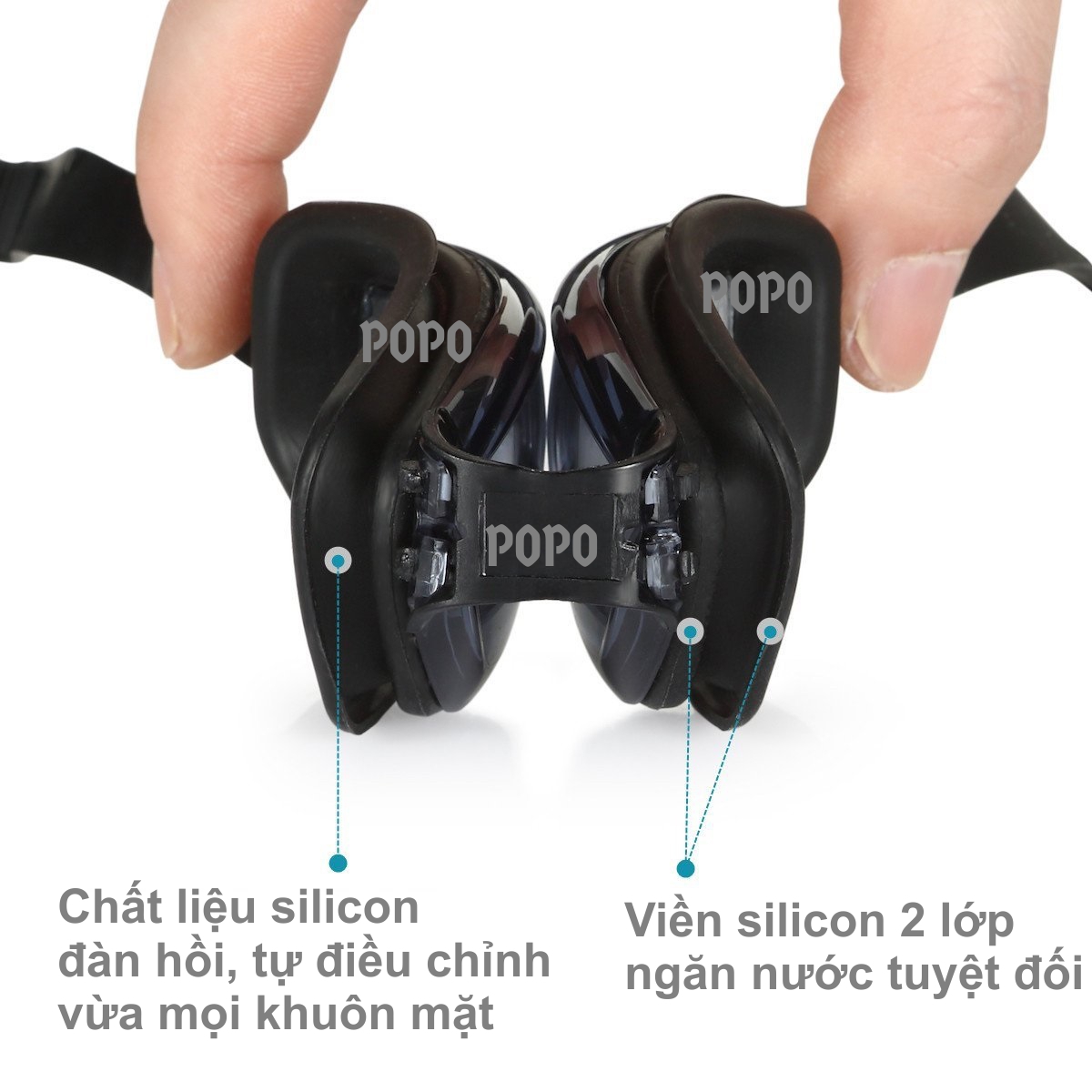 Công nghệ hiện đại viền kính silicone ôm trọn 2 mắt, chống vào nước