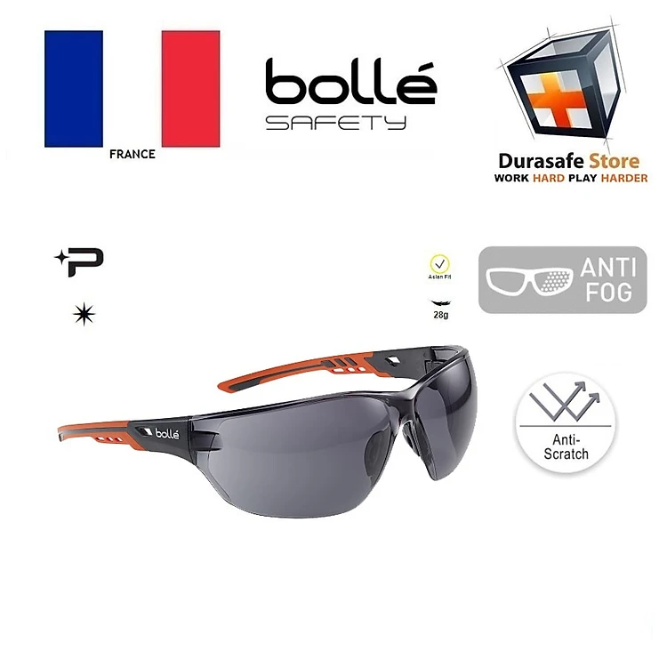 Kính BOLLE NESSPPSF NESS+ Sporty Safety Smoke Lens Anti-Fog, lớp phủ Platinum chống đọng sương, tròng đen khói (Kèm hộp)