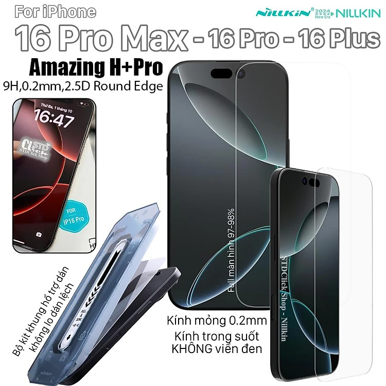 Kính cường lực cho iPhone 17 Pro Max / 17 Pro / 17 Air / 17 / 16 Pro Max - 16 Pro - 16 Plus NILLKIN H+PRO 0.2mm - kèm kit hổ trợ dán - Hàng chính hãng
