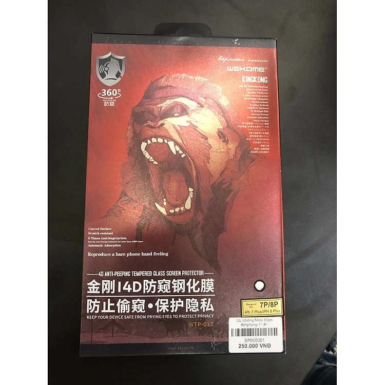 Kính Cường Lực Chống Nhìn Trộm KingKong, Bảo Mật Thông Tin Cho iPhone 7G/8G/SE/7Plus/8Plus - Full Hộp - Dán Full Màn - Hàng Nhập Khẩu
