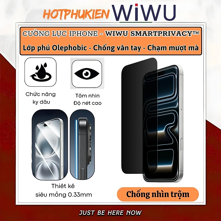 Kính cường lực chống nhìn trộm SmartPrivacy Shield HD hiệu WIWU cho iPhone 17 Air 16 16E 15 14 13 12 11 Pro Max Plus - BẢO VỆ RIÊNG TƯ – CHẠM MƯỢT NHƯ KÍNH GỐC – AN TOÀN TUYỆT ĐỐI, bo cong 2.5D - Hàng nhập khẩu