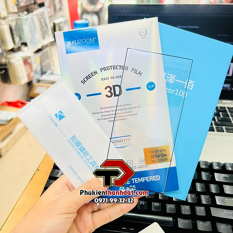 Kính cường lực full màn hình dành cho SamSung Galaxy S22 Ultra hiệu KUZOOM sử dụng vân tay siêu âm - Hàng chính hãng