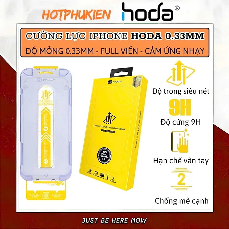 Kính Cường Lực HODA 0.33mm Cho iPhone 16 / 15 / 14 / 13 / 12 Series (Pro / Pro Max / Plus / 16E) – Độ Trong 4K, Full Màn - Hàng nhập khẩu