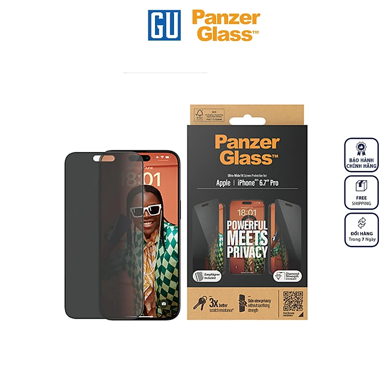 Kính Cường Lực PanzerGlass Chống Nhìn Trộm Dành Cho Iphone 15 Pro Max (Full) Hàng Chính Hãng