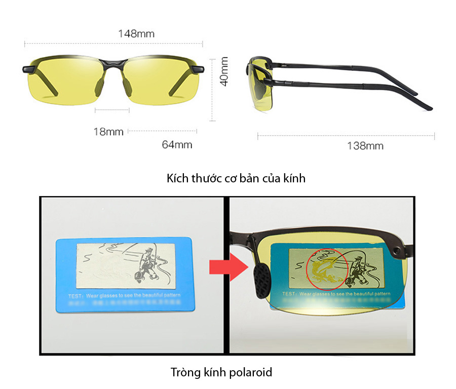 Kính đổi màu đi ngày và đêm cho nam nữ tròng polaroid chống UV chống chói lóa bảo vệ mắt.