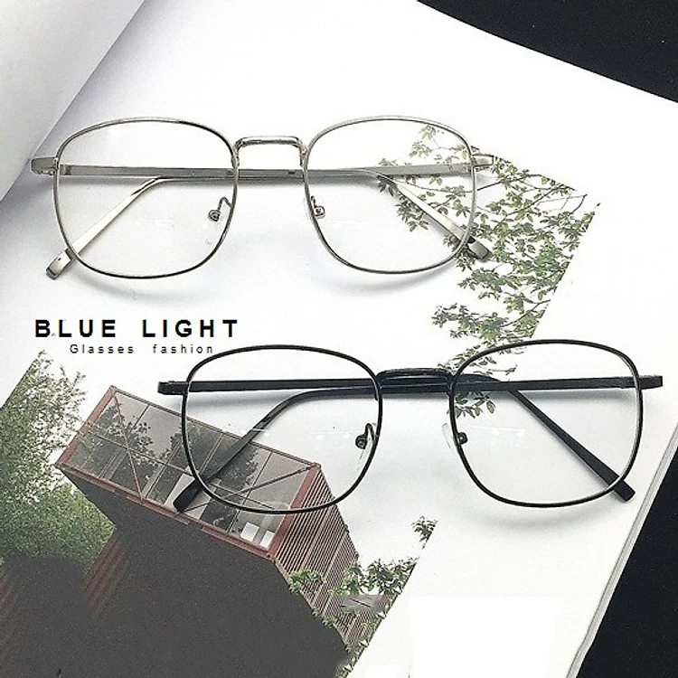 Kính Giả Cận, Gọng Kính Cận Nam Nữ Mắt Vuông Gọng Kim Loại Cứng Cáp - BLUE LIGHT SHOP