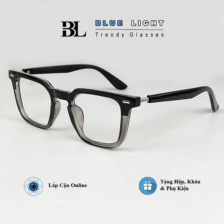 Kính Giả Cận, Gọng Kính Cận Nam Nữ, Mắt Vuông To Góc Cạnh, Phối Màu Đen Ombre Độc Lạ, Thời Trang - BLUE LIGHT