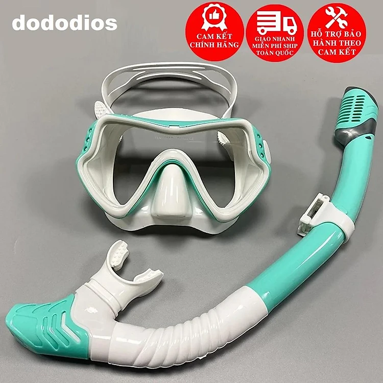 Kính lặn biển ống thở dododios với 2 van ngăn nước 100%, mặt nạ lặn với mắt kính cường lực