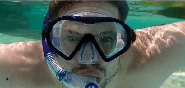 - Tròng kính được làm từ chất liệu polycarbonate trong suốt, nhẹ, bền giúp quan sát rõ khi ở dưới nước