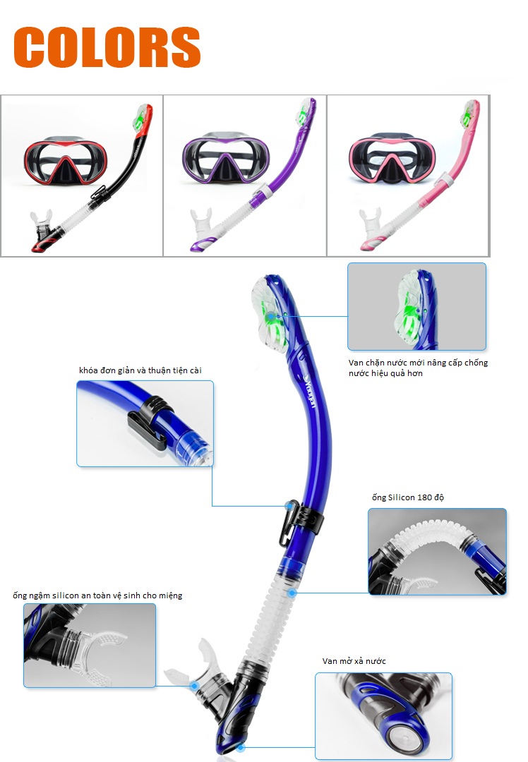- Kính bơi ống thở Yoogan được thiết kế hiện đại, cải tiến tốt nhất những nhược điểm của thế hệ trước