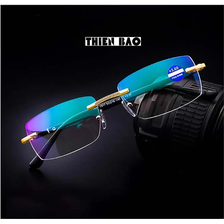 Kính lão thị, viễn thị Hai tròng nhìn XA - GẦN đọc chữ nhìn xa, tròng váng xanh, GỌNG KHOAN nam nữ không viền KT1K
