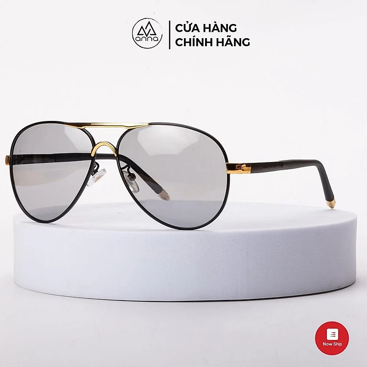 Kính mát nam ANNA dáng phi công gọng kim loại mắt râm chống tia UV - B00379