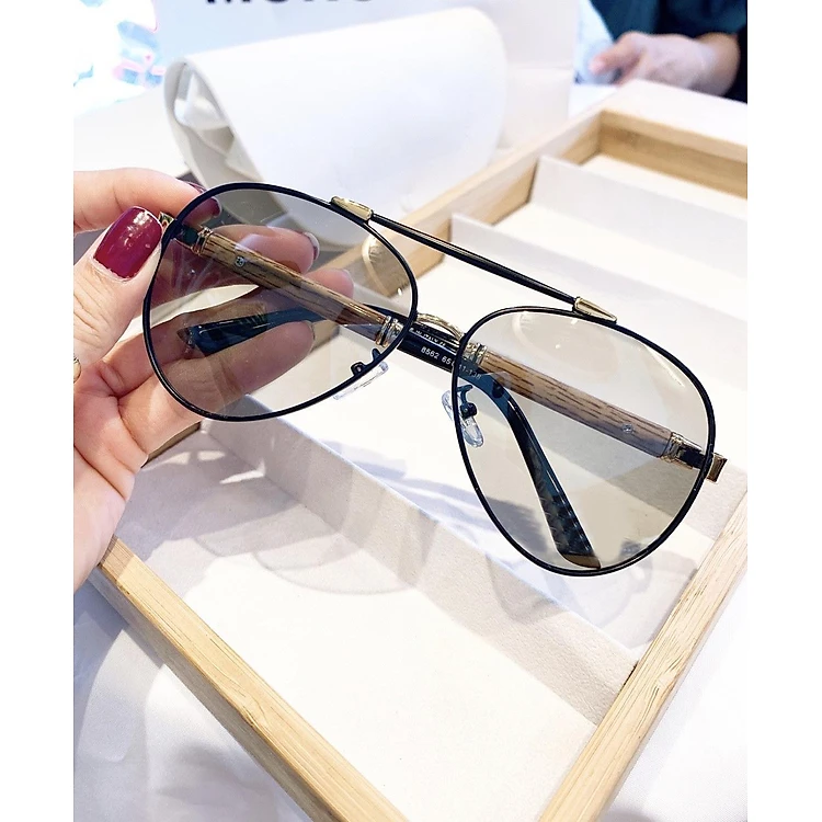 Kính mát nam cao cấp tròng kính đổi màu khi đi ra nắng, đổi màu theo nhiệt độ - Mắt kính chống tia UV gọng gỗ độc đáo P8502