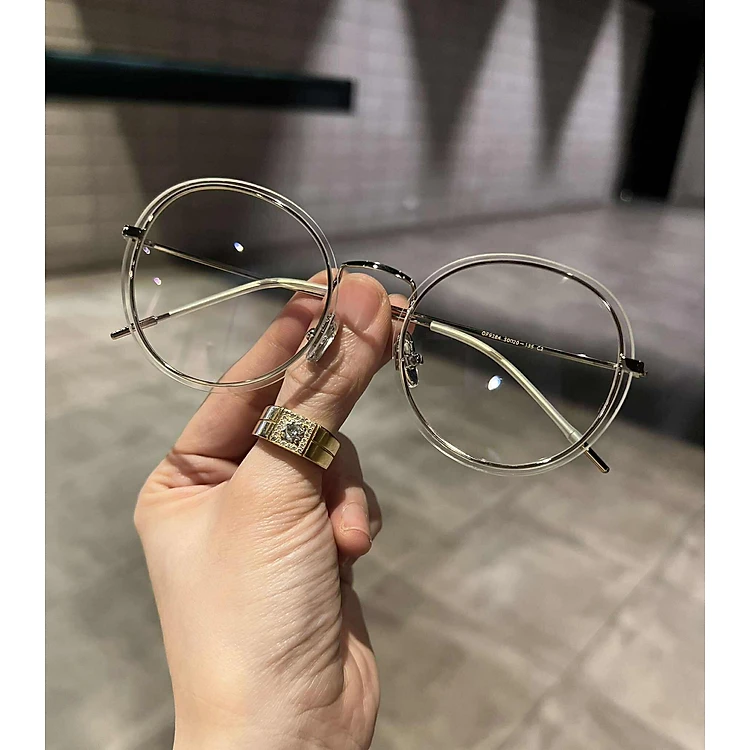Kính Mắt tròn trong suốt không viền gọng kim loại nhẹ Korea