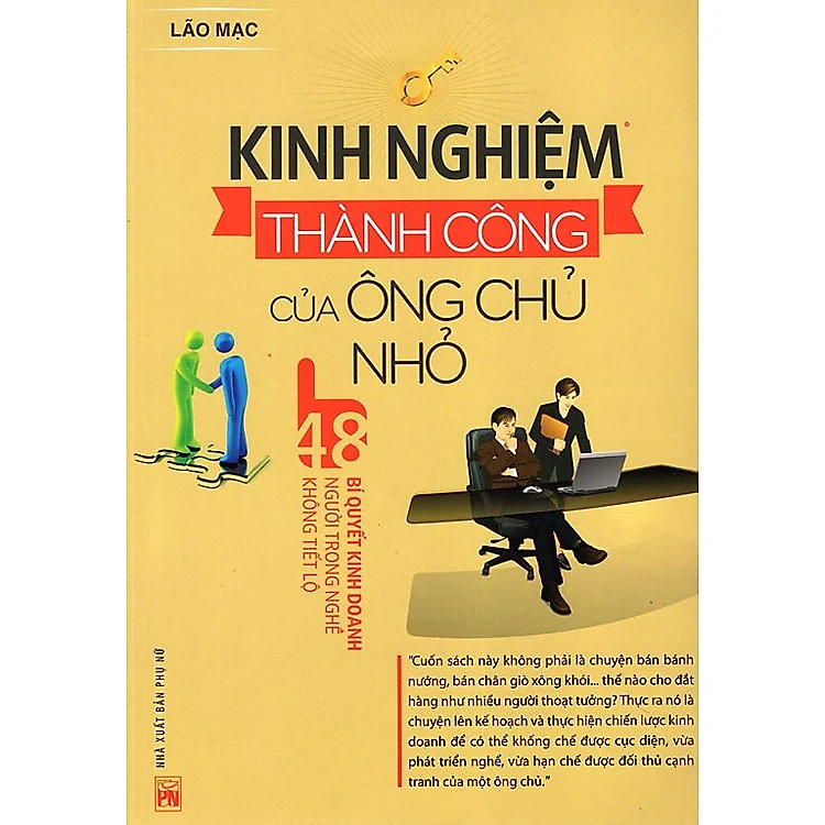 Kinh Nghiệm Thành Công Của Ông Chủ Nhỏ là một cuốn sách có nội dung khác biệt với những cuốn sách kinh doanh thông thường khác, có thể sẽ giúp ích được cho những bạn trẻ đã và đang dấn thân vào lĩnh vực kinh doanh. Trong cuốn sách này, trước tiên, tác giả nêu ra tình huống, sau đó đi sâu phân tích, đưa ra những luận điểm về những tình tiết quan trọng trong câu chuyện và đề cập tới những lĩnh vực có thể ứng dụng luận điểm đó. Những câu chuyện mà tác giả viết ra không được phân loại theo phương thức quản lí kinh doanh mà dựa theo đặc điểm cách làm của doanh nghiệp. Và đặc biệt, đó không phải là những câu chuyện quen thuộc từng được đề cập trong giáo trình thương mại, mà phần lớn là những điều tâm đắc và những trải nghiệm của chính tác giả.