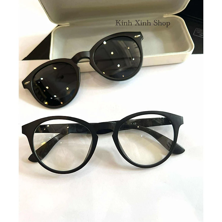 Kính Râm Cận, Gọng Kính Cận Mắt Tròn 2 Lớp Đa Năng Đi Ngày Và Đêm