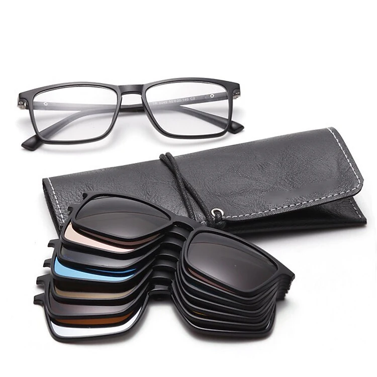Kính Râm Cận Nam Nữ Mắt Vuông Nhiều Tròng Cao Cấp - Kèm 5 Tròng Râm