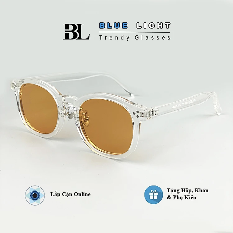 Kính Râm, Kính Mát Nam Nữ Cao Cấp, Mắt Tròn Gọng Nhựa Dày Cứng Cáp, Đen, Cam Trong Suốt - BLUE LIGHT