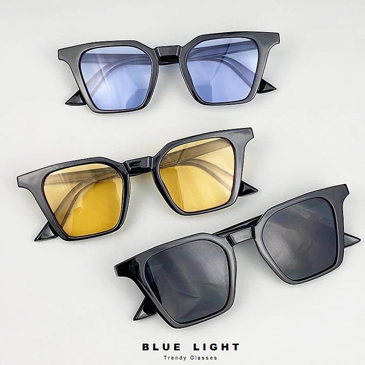 Kính Râm, Kính Mát Nam Nữ Mắt Vuông Góc Cạnh, Dáng Vừa Đeo, Chống Tia UV400, Đen, Vàng, Xanh Dương - BLUE LIGHT