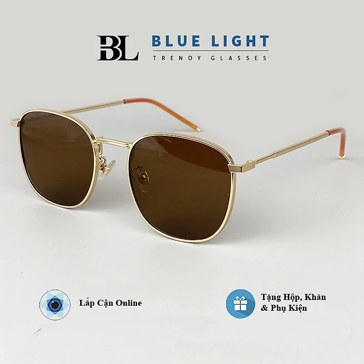 Kính Râm, Kính Mát Nam Nữ, Mắt Vuông Gọng Kim Loại Dày Cứng Cáp Đen, Nâu, Chống Tia UV - BLUE LIGHT