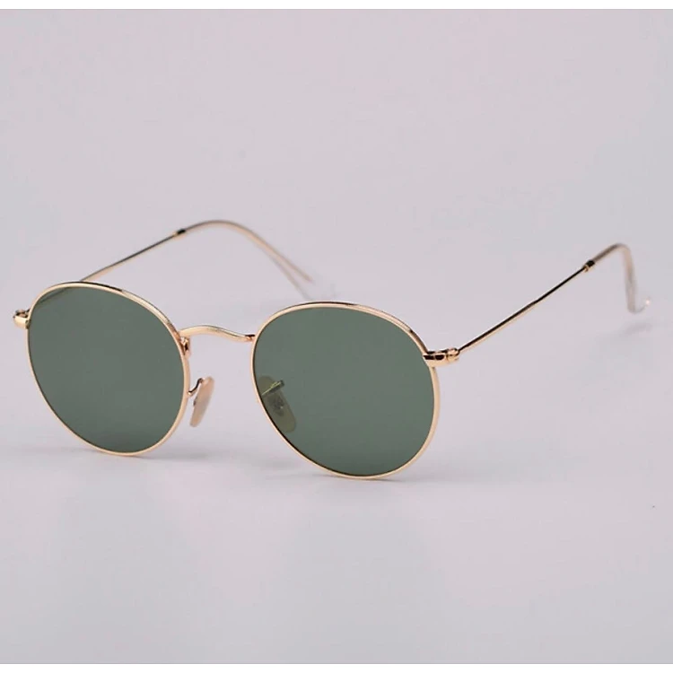 Kính râm Mắt Tròn Tròng Thủy Tinh Cao Cấp Gọng Kim Loại Chống Nắng UV