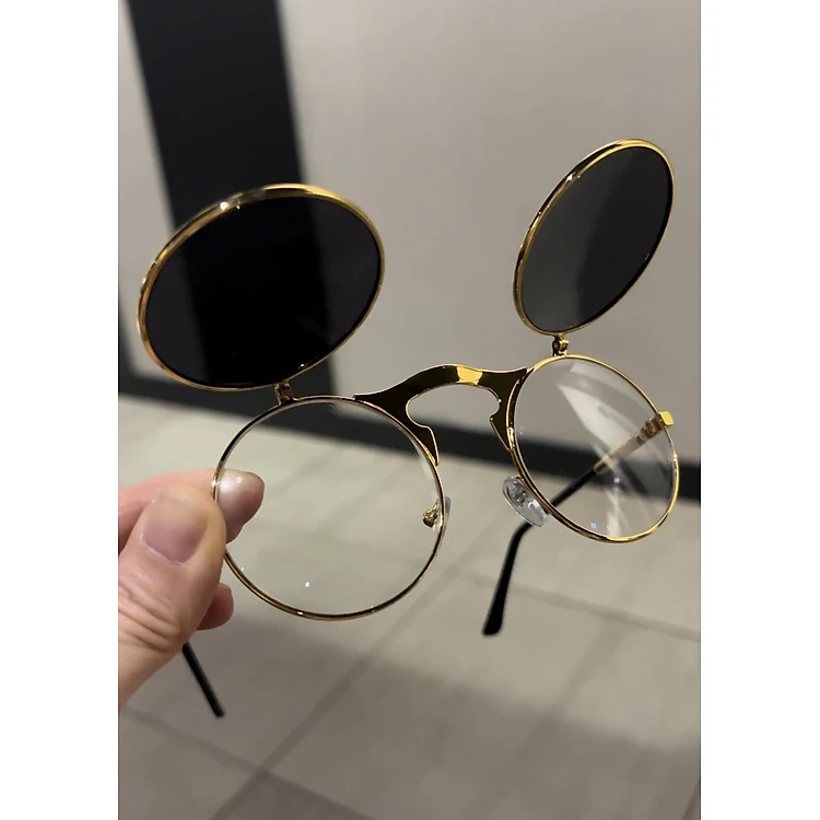 Kính râm Mắt tròn tròng thủy tinh mở nắp cao cấp