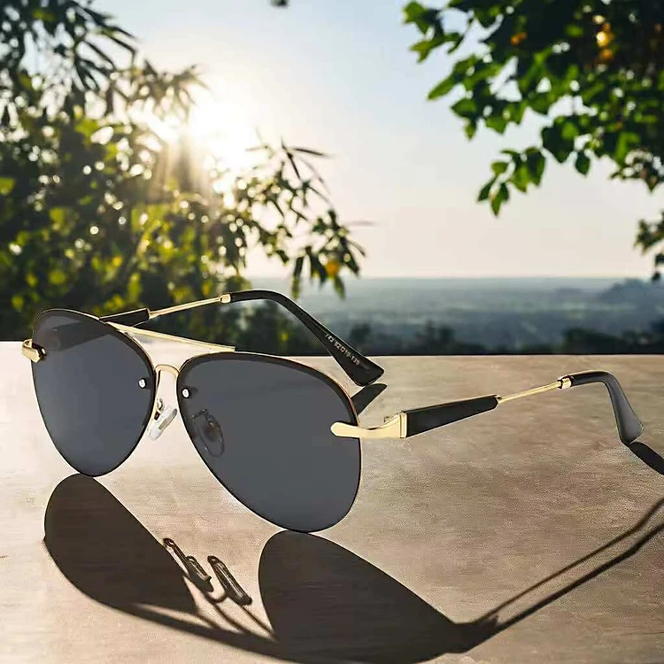 Kính râm Nam màu đen không viền thời trang đi đường chống nắng UV