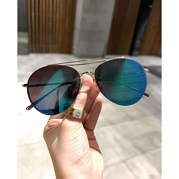 Kính râm nam nữ thời trang chống nắng Mắt xanh tráng gương form nhỏ sành điệu