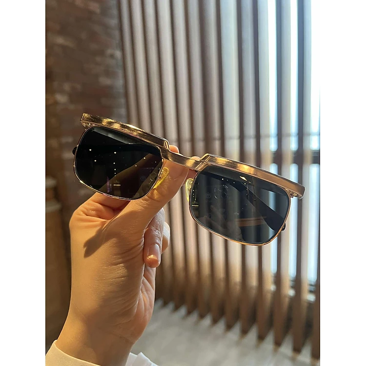 Kính râm nam Solex chữ H Mắt thủy tinh chống Uv Gọng mạ vàng 14K + Fullbox phụ kiện