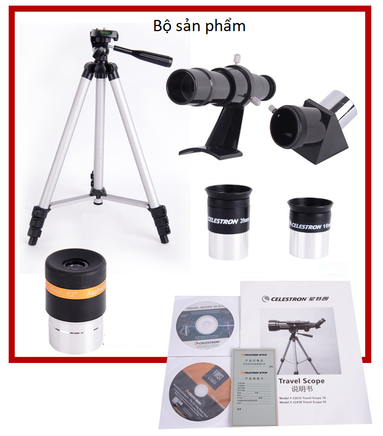 Kính thiên văn Celestron 70400 với đường kính vật kính 70mm cho khả năng thu sáng tốt. Với tiêu cự 400mm kính thiên văn này rất nhỏ gọn. Vì vậy rất thích hợp cho trẻ em sử dụng để tìm hiểu về thiên văn học ở bất kỳ thời gian và địa điểm nào. Đi kèm ba thị kính 20mm, 10mm, 4mm cung cấp độ phóng đại khác nhau để quan sát nhiều đối tượng.