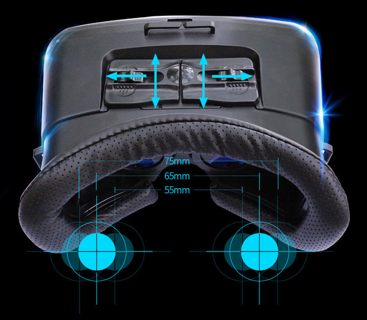 Ngoài ra bạn cũng có thể điều chỉnh khoảng cách 2 thấu kính so với mắt sao cho hình ảnh đẹp và rỏ nhất. Điều này rất thích hợp với những người cận hoặc viễn thị. Ai cũng có thể sử dụng kính thực tế ảo VR- OEM by Agiadep.