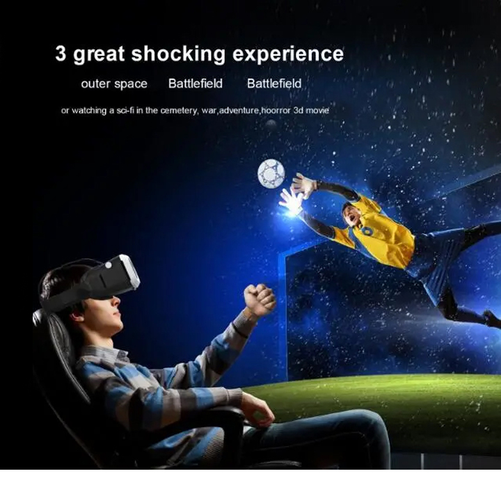 + Thiết bị kính đeo thực tế ảo làm cho bạn đắm chìm vào một không gian ảo ấn tượng, tạo nên một thế giới thực đến ngỡ ngàng. Bất kể đang ở đâu, bạn cũng có thể thoải thích khám phá kho phim sinh động, phong phú của mình, đắm chìm trong các pha hành động kịch tính với trải nghiệm không giới hạn.