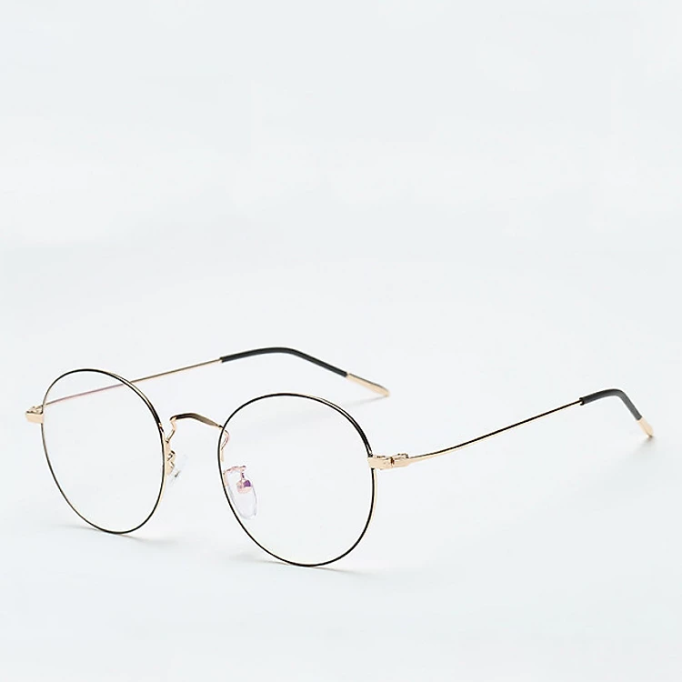Kính Giả Cận Nam Nữ Gọng Kính Cận Không Độ Mắt Tròn Đen Vàng Gọng Mảnh