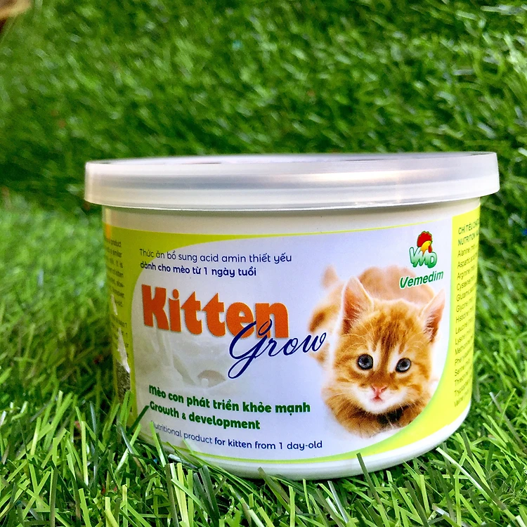 Kitten grow là sản phẩm dinh dưỡng chứa các acid amin thiết yếu cung cấp nguồn dinh dưỡng dễ tiêu hóa và hấp thu, hỗ trợ cho sự tăng trưởng và phát triển khỏe mạnh của mèo con từ 1 ngày tuổi, còi cọc, chậm lớn, mất mẹ.