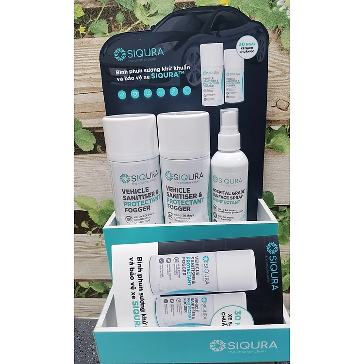 (KM) Combo 02 bình phun sương khử mùi & khử khuẩn bảo vệ xe hơi 30 ngày SIQURA tặng 01 chai xịt 100ml dung dịch khử khuẩn bề mặt chuẩn y tế Úc