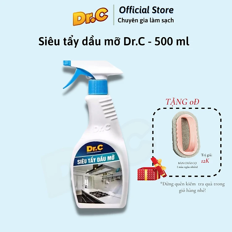 ( KM tặng Bàn chải) Siêu tẩy dầu mỡ Dr.C tẩy sạch lưới lọc máy hút mùi, mặt bếp ga, bếp từ, tường khu vực bếp,vật dụng nhà bếp, Chính Hãng, Chai 500ml
