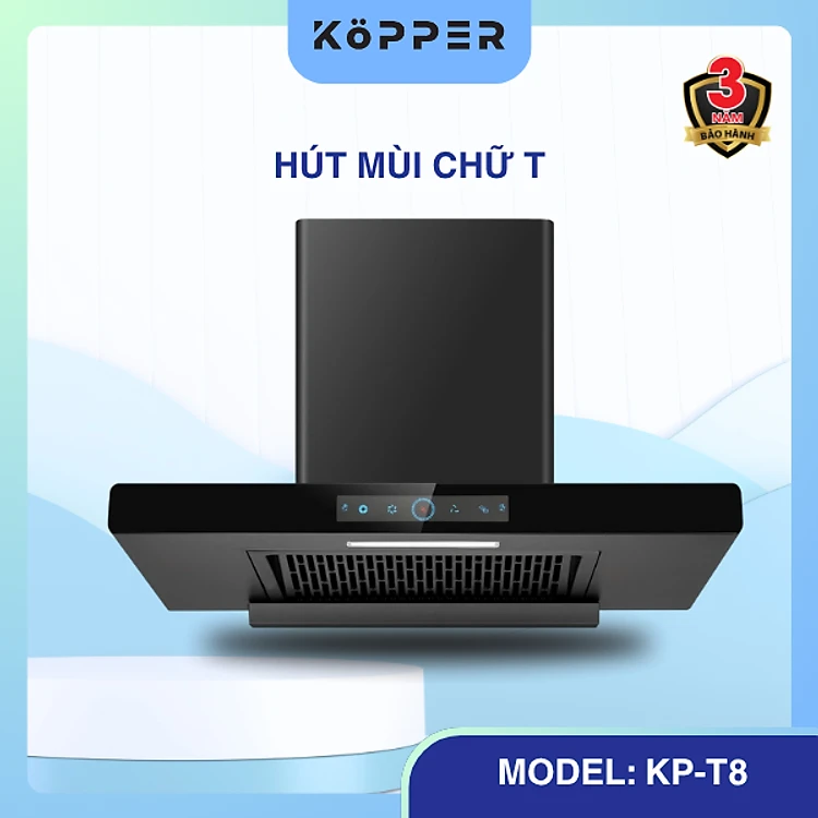 Kopper Hút Mùi Thông Minh KPT8 Công Suất Lớn 1800m3/h Có Sấy Dầu Tự Động Màn Hình Cảm Ứng Tiếng Ồn <50dB Đèn LED 1 Đèn Lớn Quạt Li Tâm Cánh Thép Động Cơ Đồng Hàng Chính Hãng