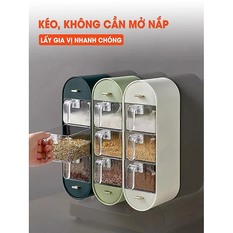 [KoSuyTu] Hộp Đựng Gia Vị Treo Tường 3 Tầng 5 Ngăn Nhà Bếp - Miếng Dán Cực Chắc Chắn, Nhựa Nguyên Sinh, Chống Nước Chống Ẩm - An Toàn, Sang Trọng, Tiện Lợi