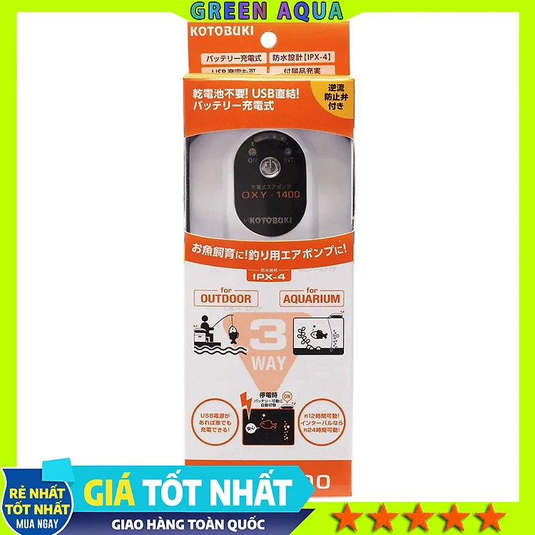 KOTOBUKI - Air Pump (OXY-1400) | Máy bơm sủi Oxy tích điện siêu êm cho hồ cá thuỷ sinh, hồ cá biển san hô