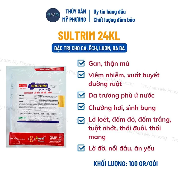 Ks mù lồi mắt vẹo đầu cổ gan thận mủ đốm đỏ Sultrim 24kl phù đầu sưng vòi xuất huyết sình bụng cho cá lươn ếch ốc baba