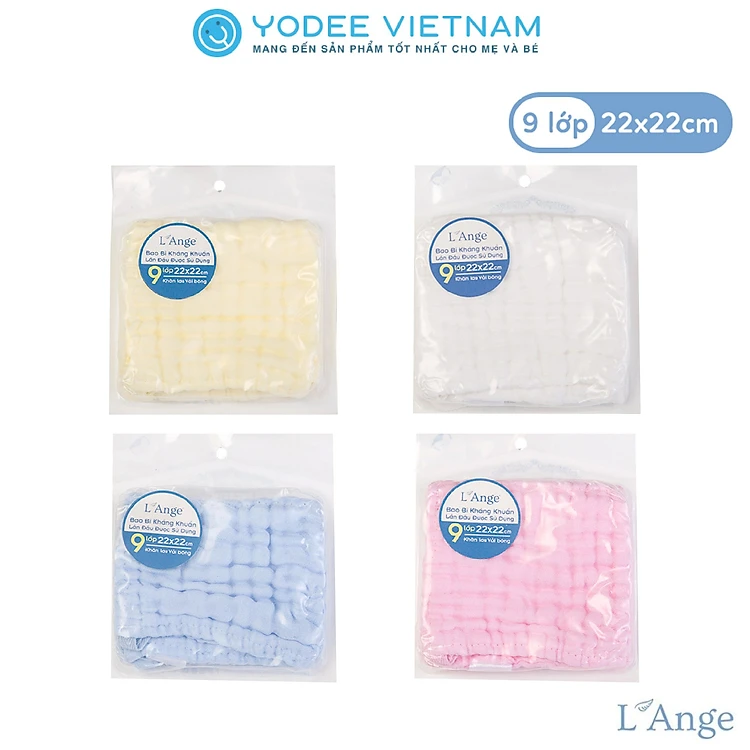 L'Ange Khăn sữa/Khăn lót đầu/Khăn lau mặt/Khăn yếm vải bông 9 lớp 22x22cm (set 1 cái)